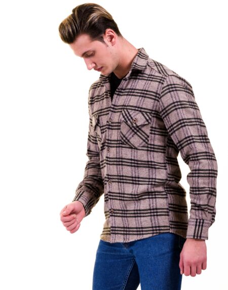 Tan Black Check Mens Slim Fit Designer Dress Shirt - tailored Cotton Shirts for Work and Casual Wear