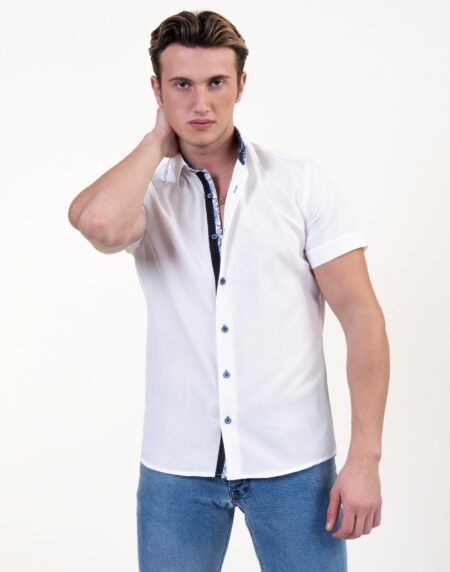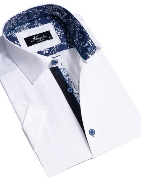 Solid White Mens Short Sleeve Button up Shirts - Tailored Slim Fit Cotton Dress Shirts