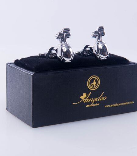 Silver with Black Mens Stainless Steel Golf Cufflinks for Shirt with Box - Hand Crafted Perfect Gift