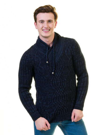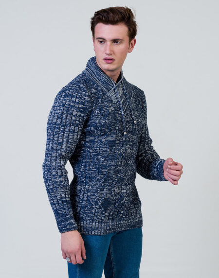 Blue Rounded Neck European Wool Luxury Zippered With Sweater Jacket Warm Winter Tailor Fit