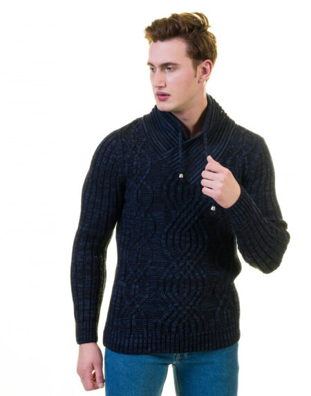 Dark Black Wool Luxury Zippered With Sweater Jacket Warm Winter Tailor Fit