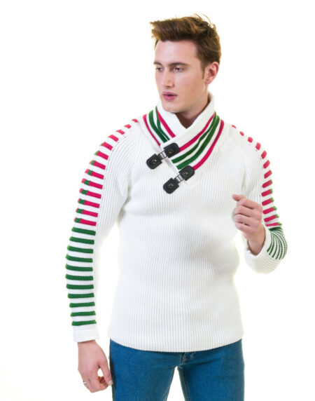 Off White Printed European Wool Luxury Zippered With Sweater Jacket Warm Winter Tailor Fit