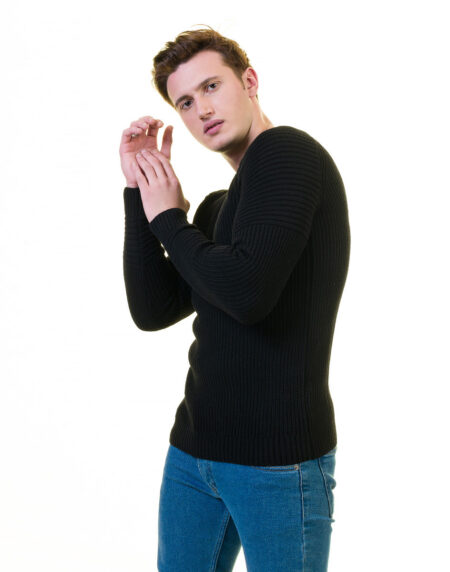 Full Black Wool Luxury Zippered With Sweater Jacket Warm Winter Tailor Fit