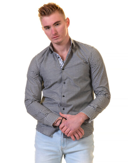 Black White Check Mens Slim Fit Designer French Cuff Shirt - tailored Cotton Shirts for Work and Casual Wear