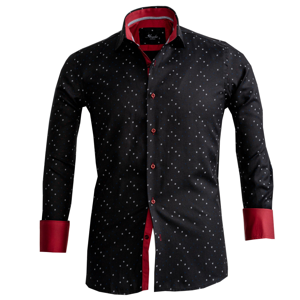 Update your Smart / Casual wardrobe with this luxurious, eye-catching Amadeo Exclusive French cuff dress shirt. Pair this shirt with denim jeans, pants, or plain, loose shorts and be sure to be flattered with compliments.