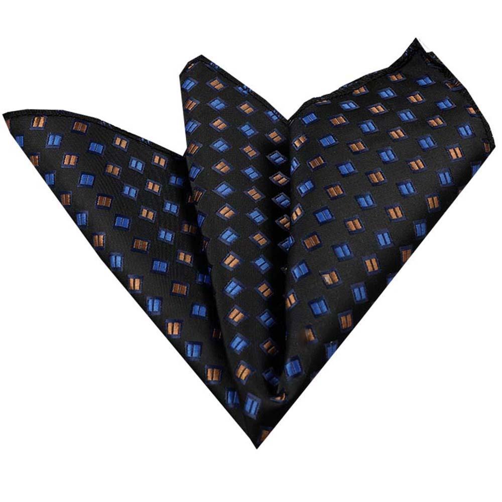 Black with Metallic Blue & Gold Mens Pocket Square – Premium Silk Handkerchiefs for Suits