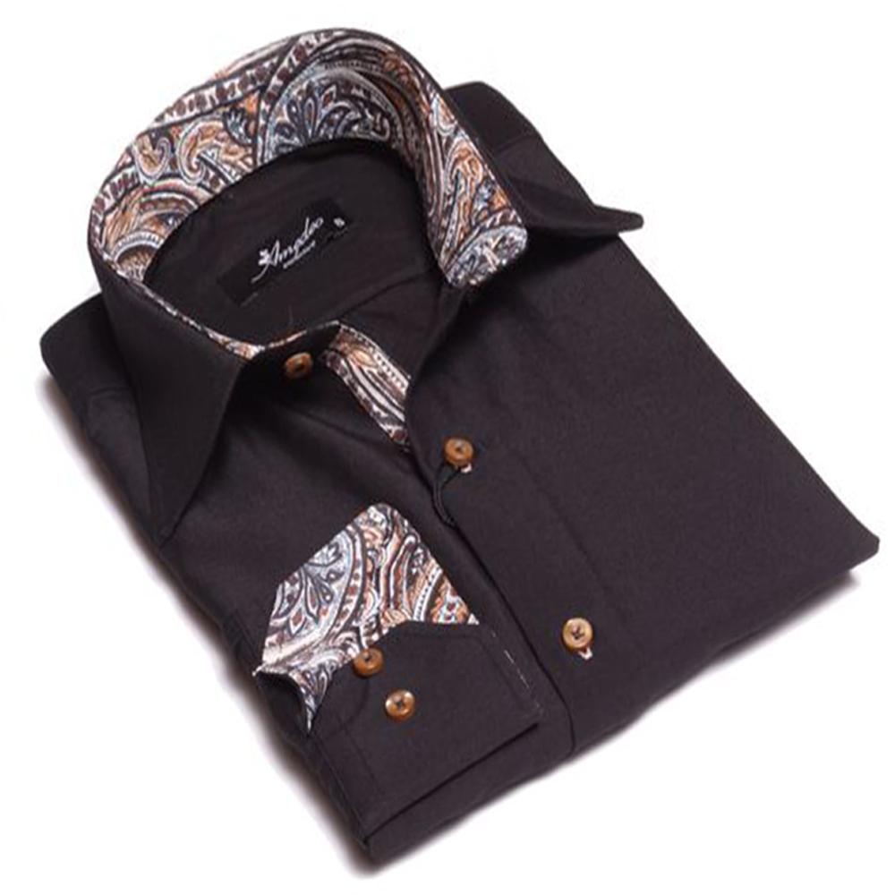 Black with Tan Paisley Mens Slim Fit Designer French Cuff Shirt – tailored Cotton Shirts for Work and