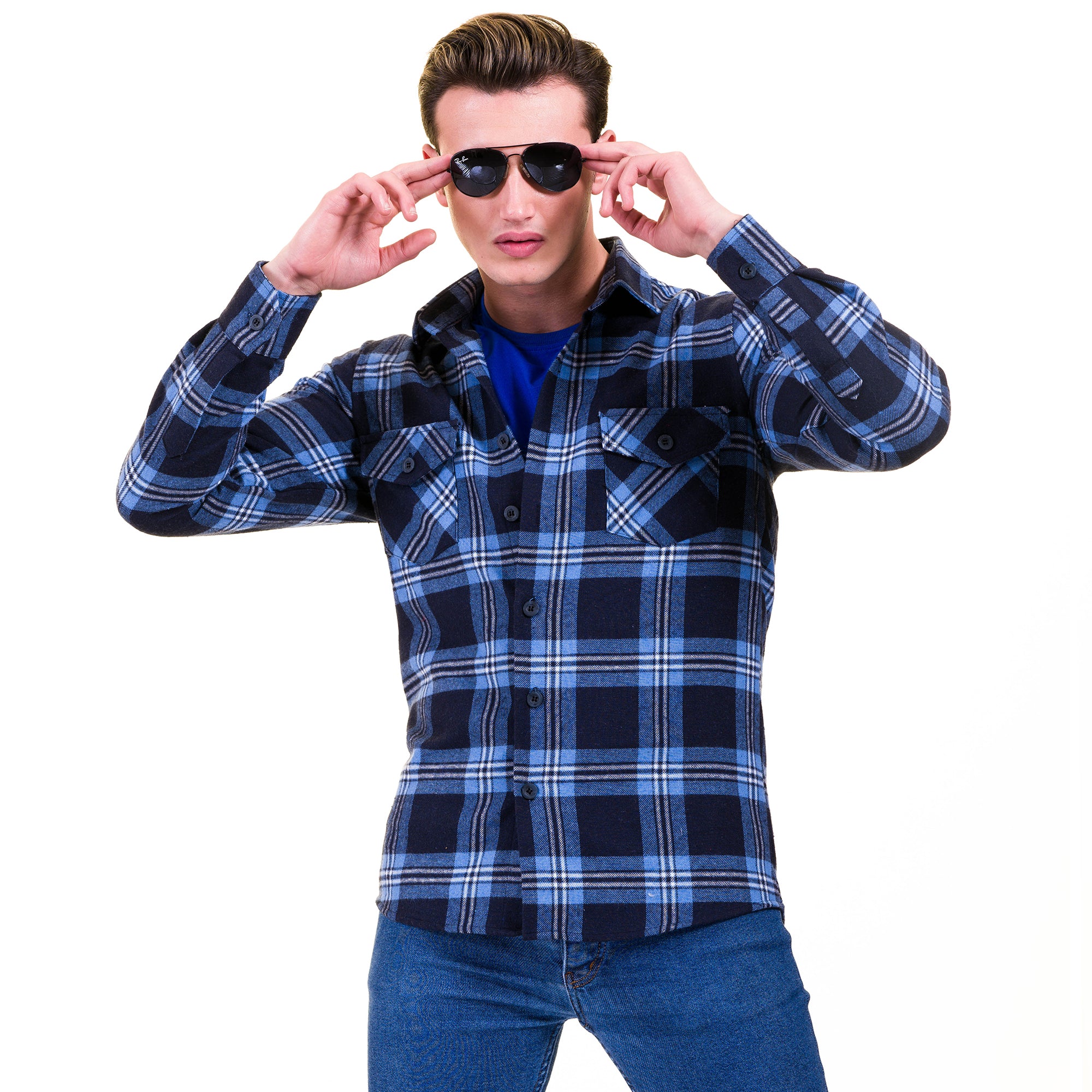 Amedeo Exclusive presents the Blue and Black Checked Shirt Dress which is perfect for formal or casual wear. With this shirt, you get two looks in one!