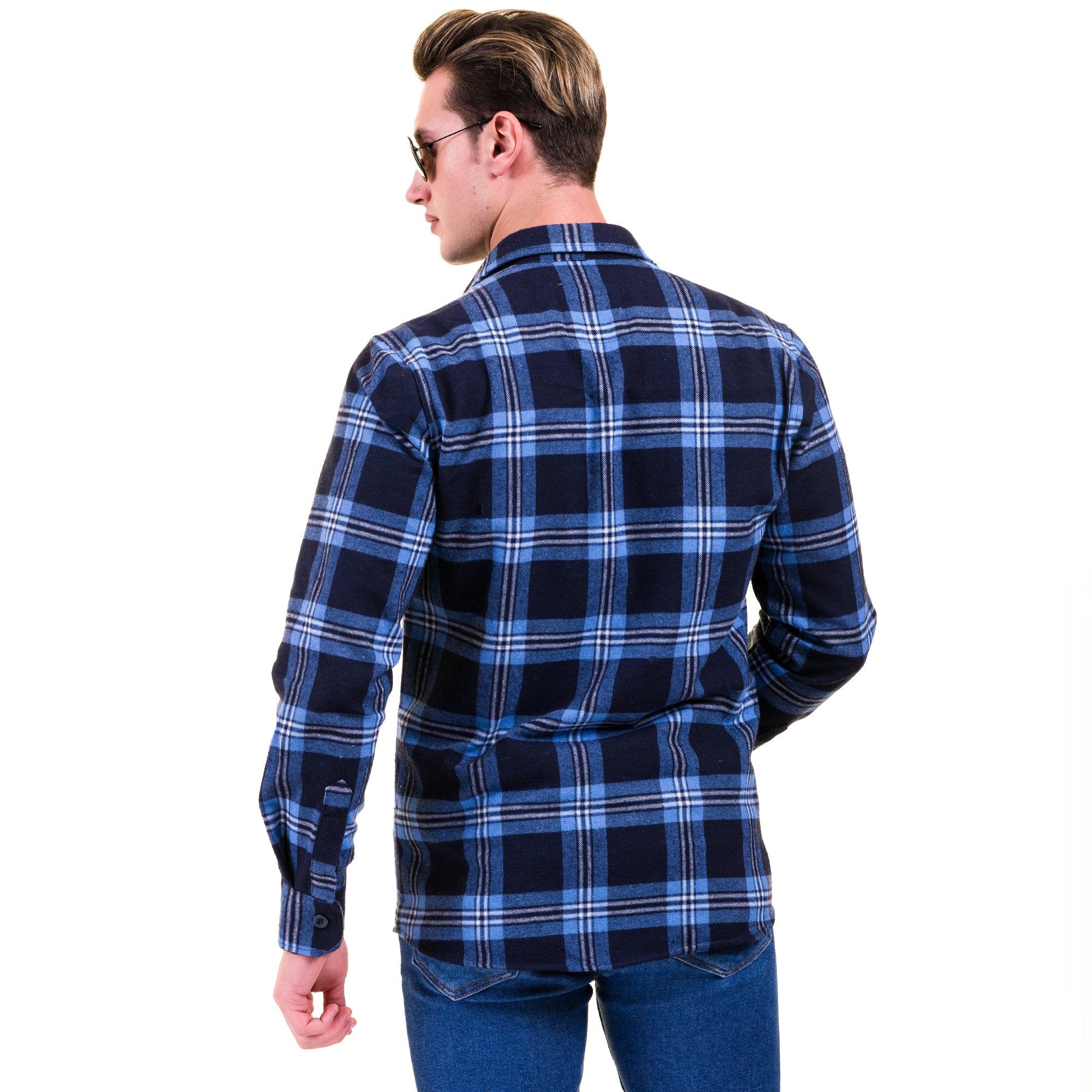 Our Collection of Slim Fit Designer Blue and Black Checked Shirt Dress are produced in traditional Turkish cotton mills, with a long history of producing unsurpassed textiles you can be assured of the high quality of this garment.