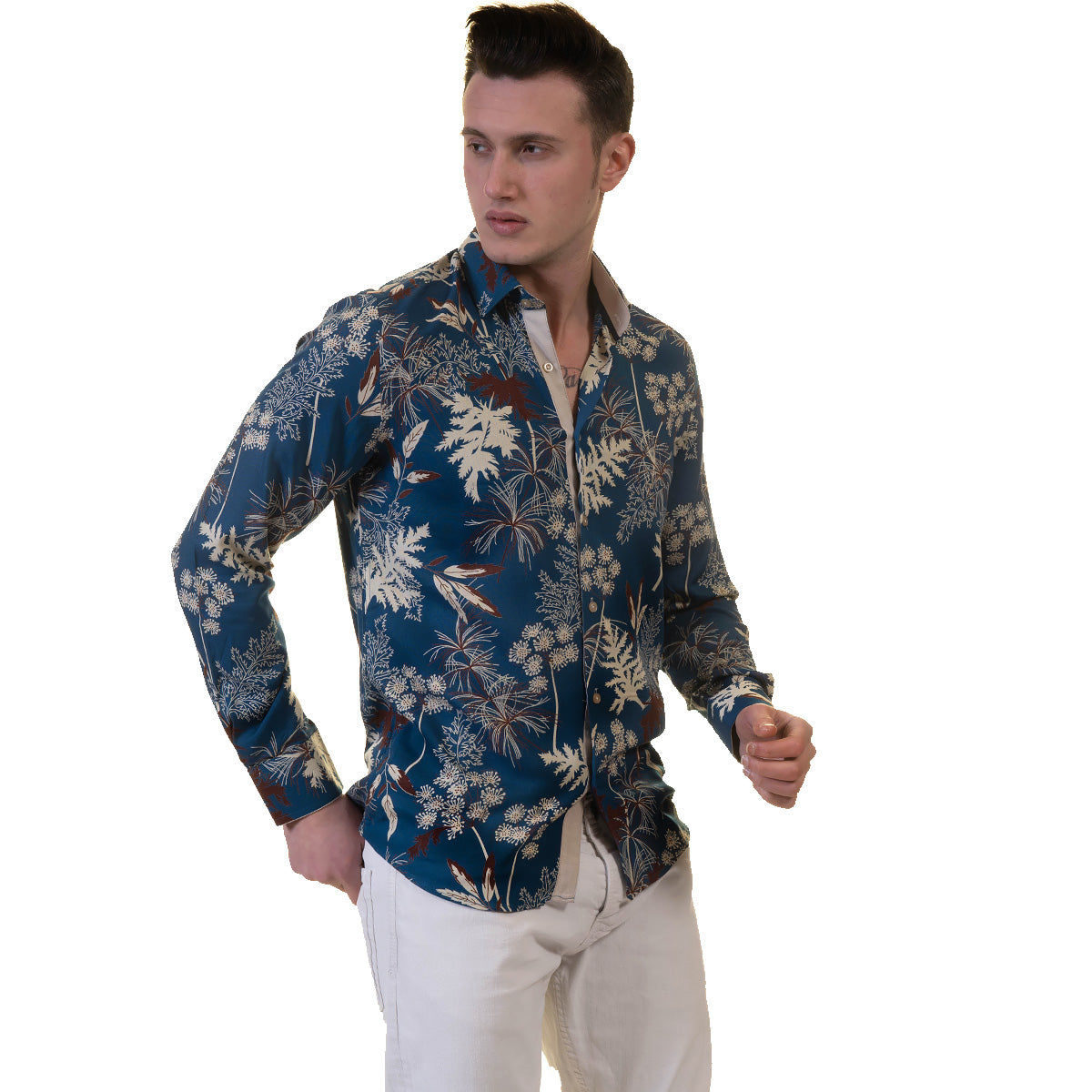 Amedeo Exclusive presents the Slim Fit Designer Dress Shirt which is perfect for formal or casual wear. With this shirt, you get two looks in one!