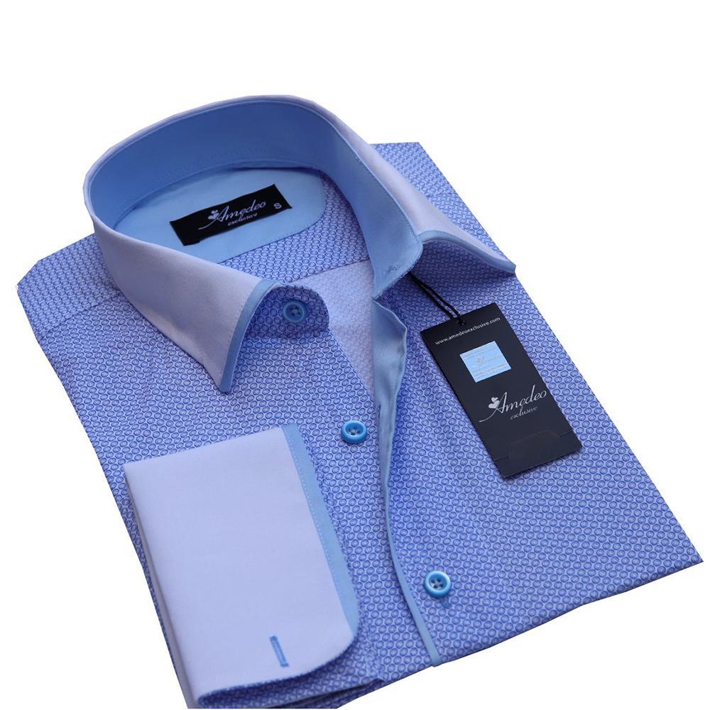 Update your Smart / Casual wardrobe with this luxurious, eye-catching Amadeo Exclusive French cuff dress shirt. Pair this shirt with denim jeans, pants, or plain, loose shorts and be sure to be flattered with compliments.