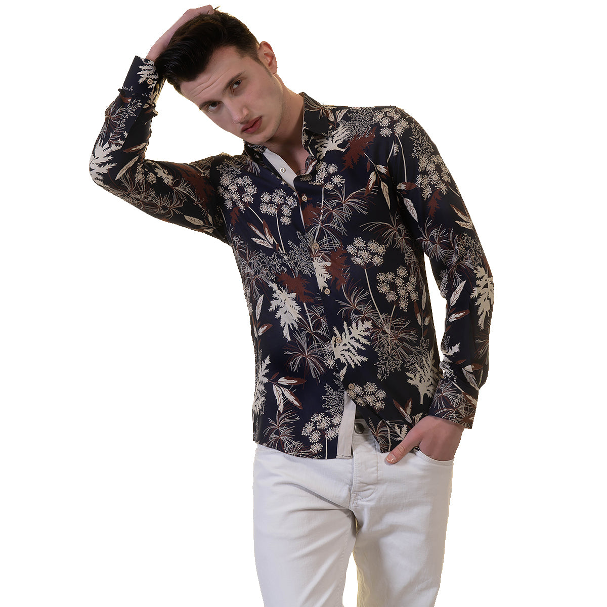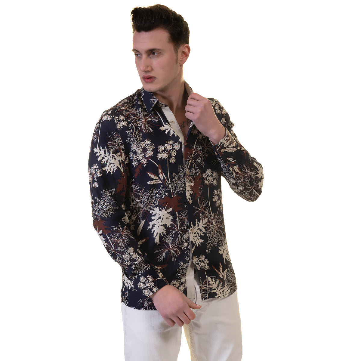 Floral Mens Slim Fit Designer Dress Shirt – tailored Cotton Shirts for Work and Casual Wear