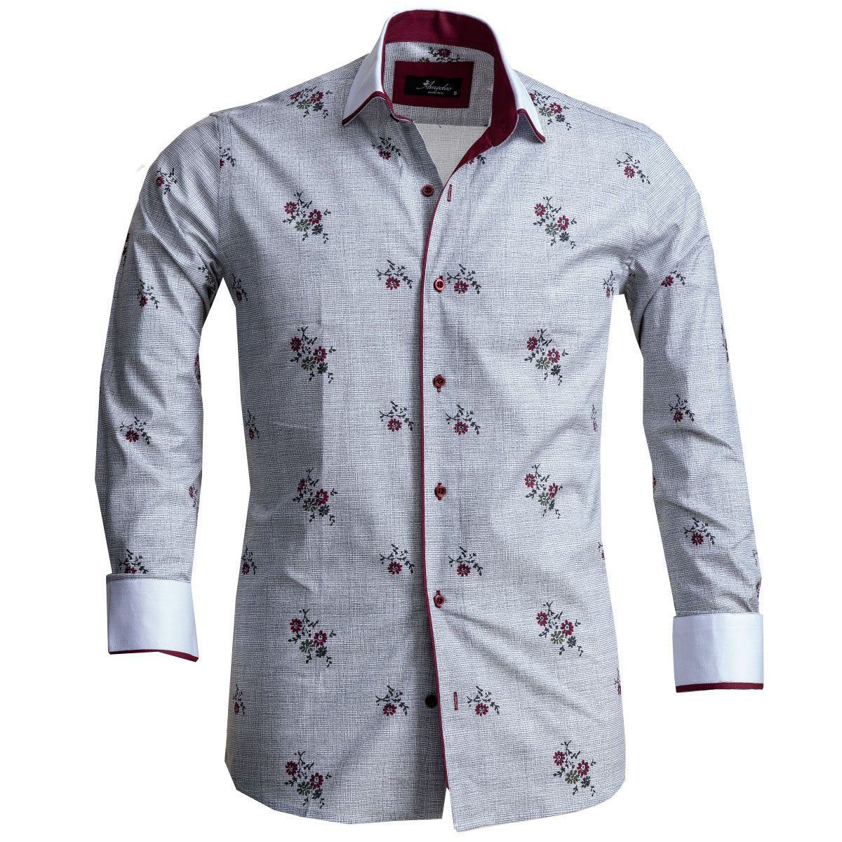 Grey Floral Mens Slim Fit Designer Dress Shirt – tailored Cotton Shirts for Work and Casual Wear