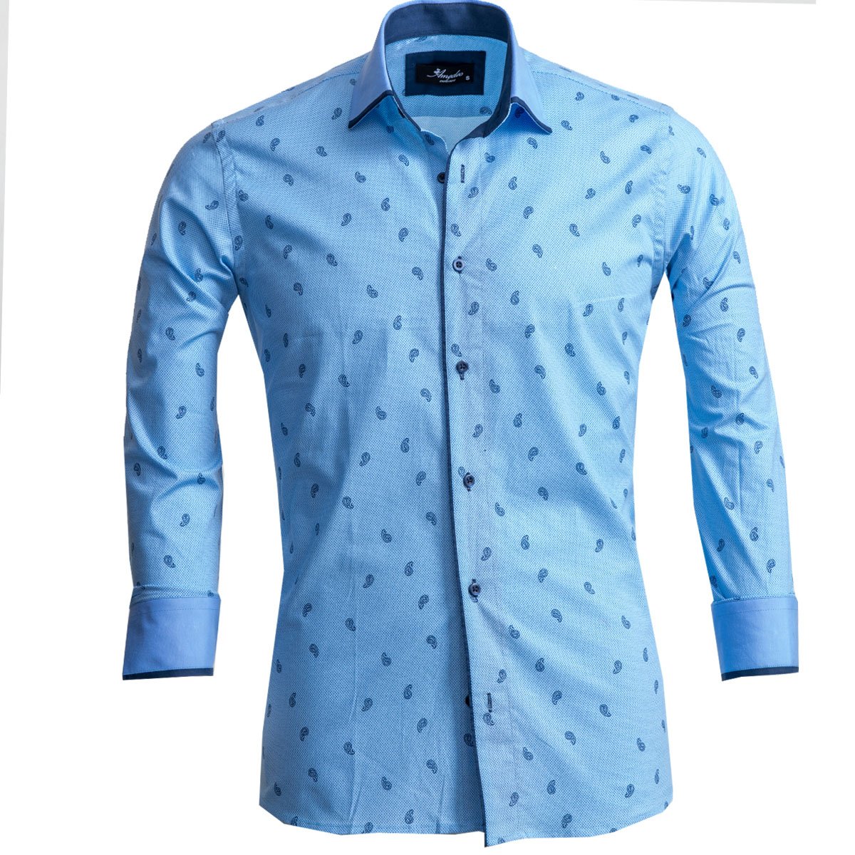 Light Blue Paisley Mens Slim Fit Designer Dress Shirt – tailored Cotton Shirts for Work and Casual