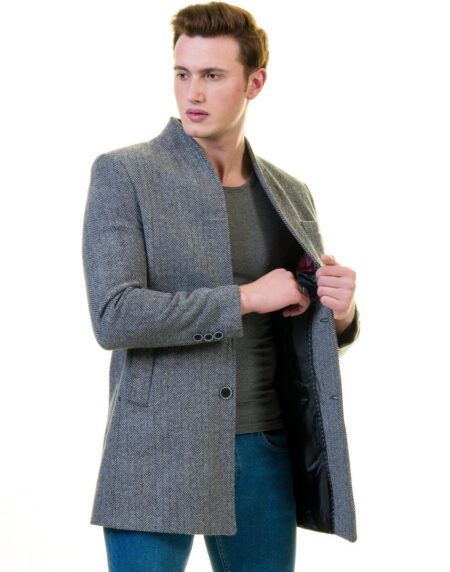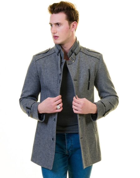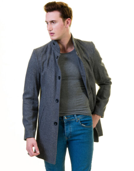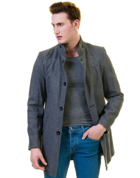 Men’s European Dark Grey Wool Coat Jacket Tailor fit Fine Luxury Quality Work and Casual