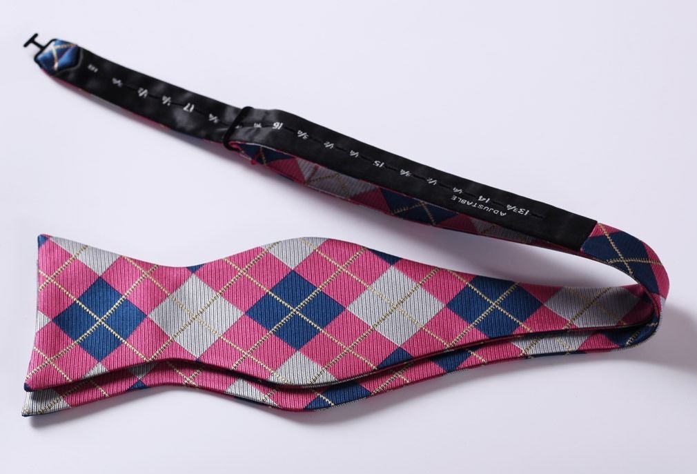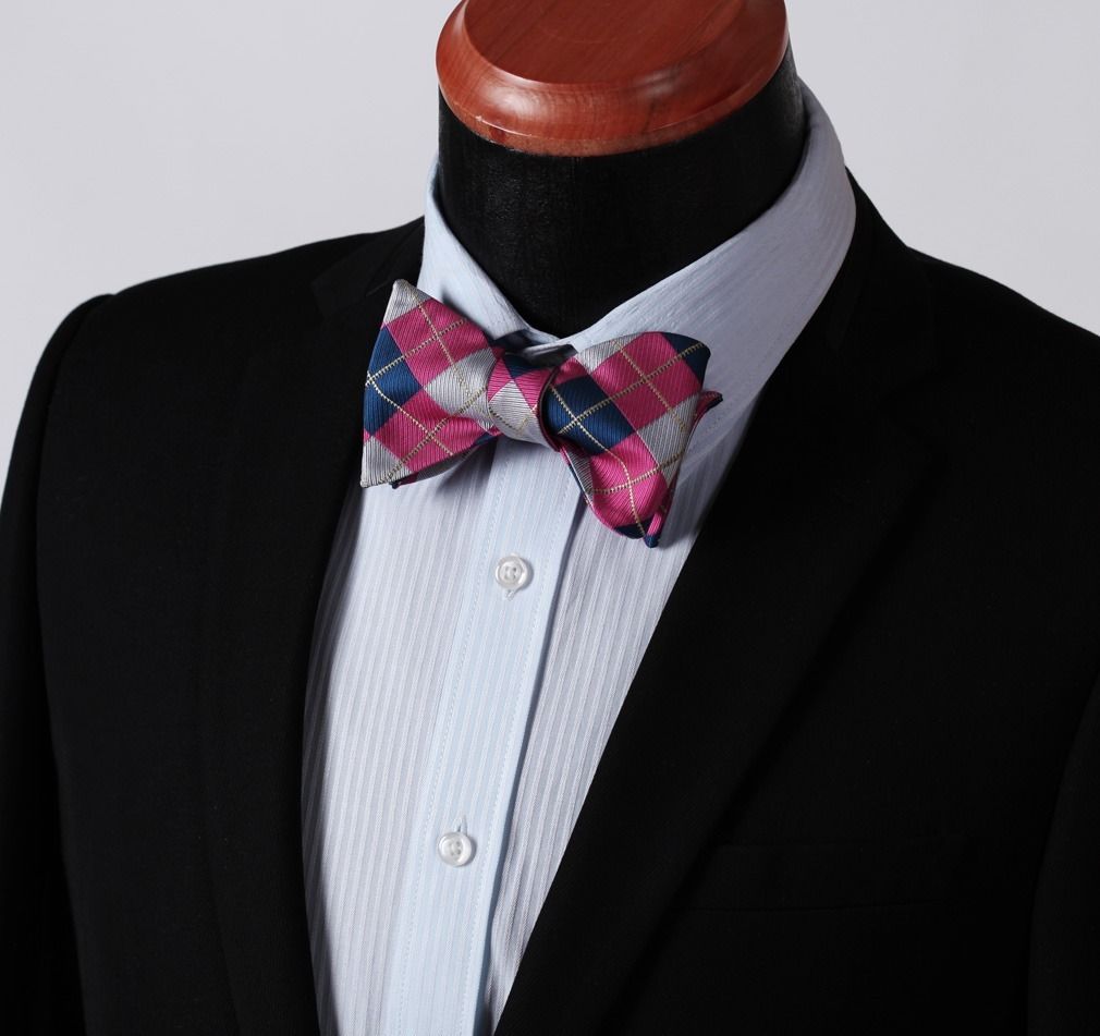 Men’s Pink Gray Check Silk Self Bow Tie & Handkerchief