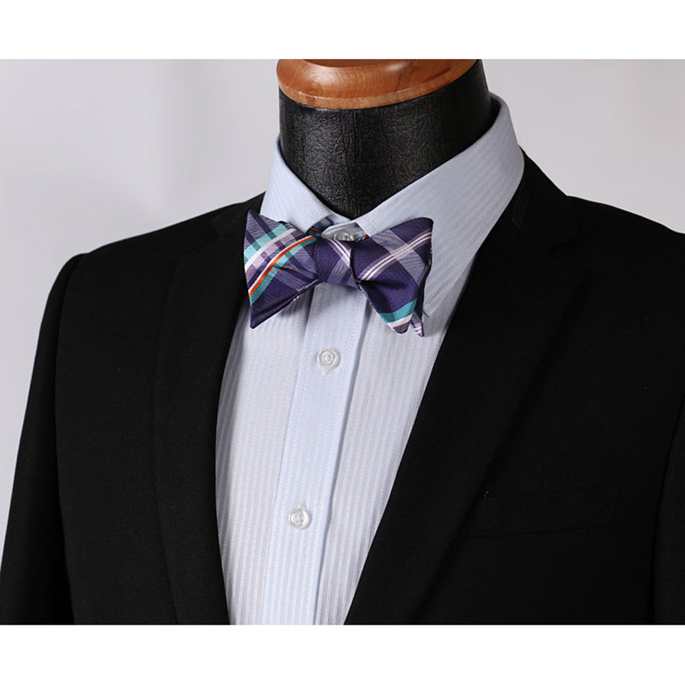 Men’s Purple Aqua Orange Check Bow Tie & Pocket Handkerchief – Identical 21