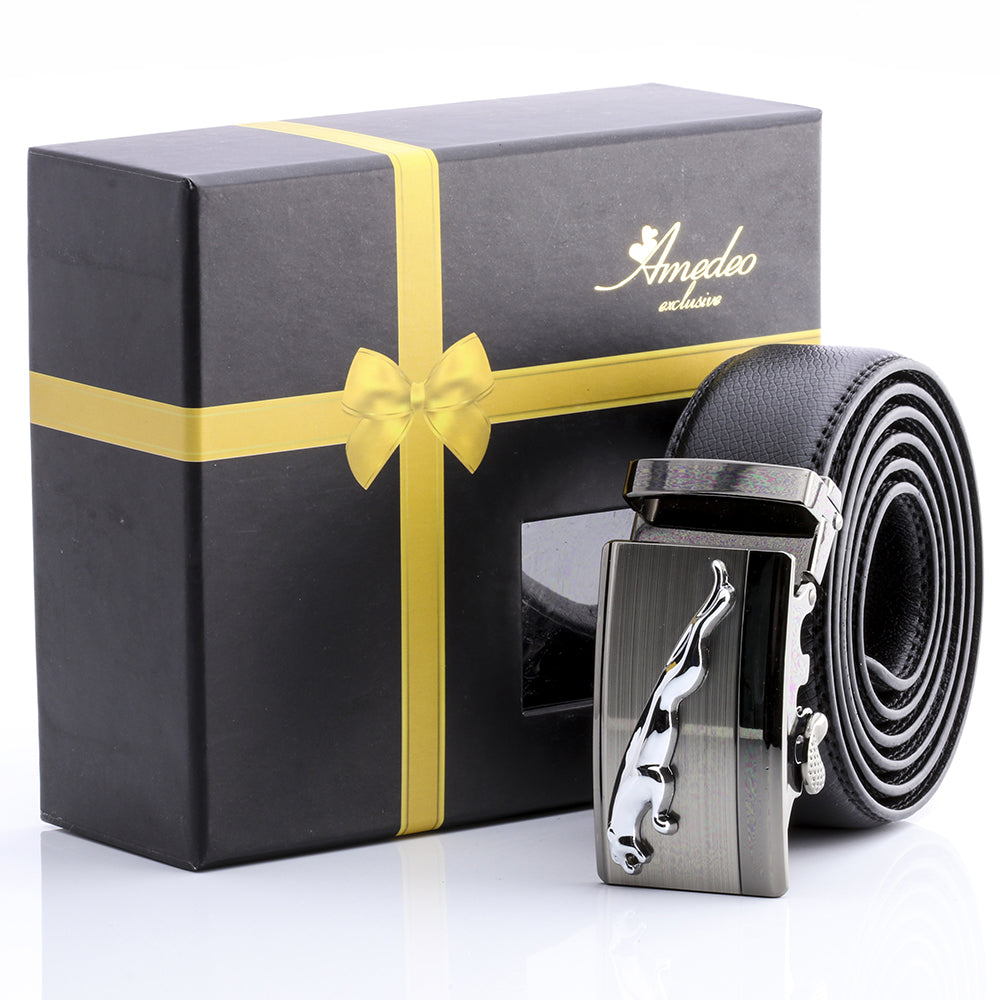 Comfort Click perfect fit belt – the belt that fits every time, all the time. The smart ratchet no hole automatic buckle belt with brushed chrome buckle fits waist 26 – 52 with micro-adjustable 32-position ratcheting track system for custom fit. Can adjust throughout the day. You’ve never worn a more comfortable belt. Amedeo Exclusive, No Holes Automatic Belt are here! No more making holes in your belts, and then having to replace them every 6 months! This beautiful durable no hole belt will last, LONG! Bunch of gorgeous metal buckles to choose from. Premium Quality with Stainless Steel Buckle.