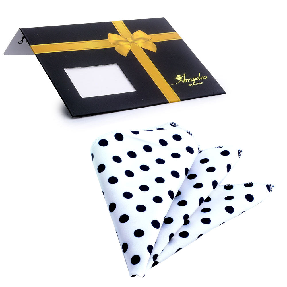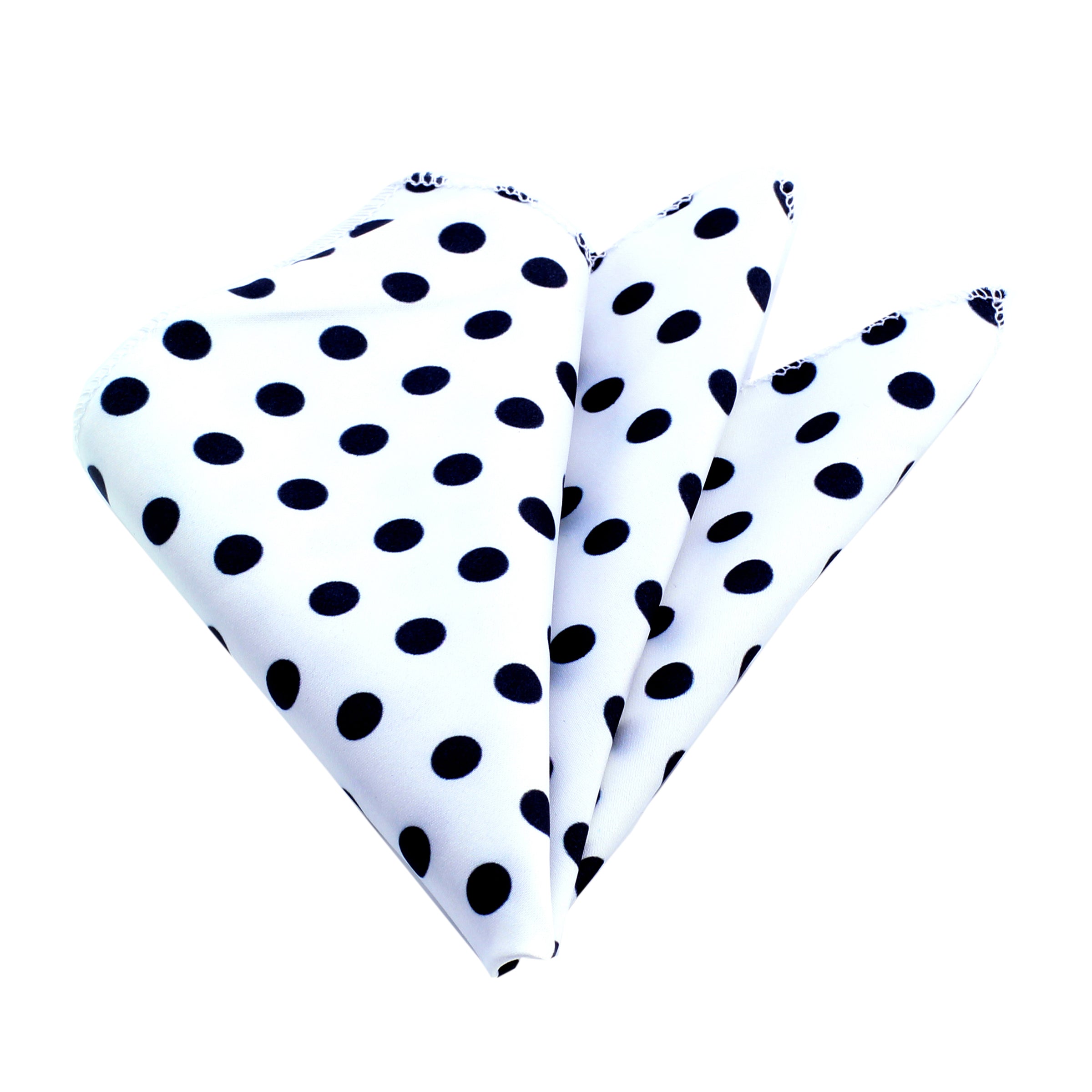 Men’s White With Big Black Dots Pocket Square Hanky Handkerchief