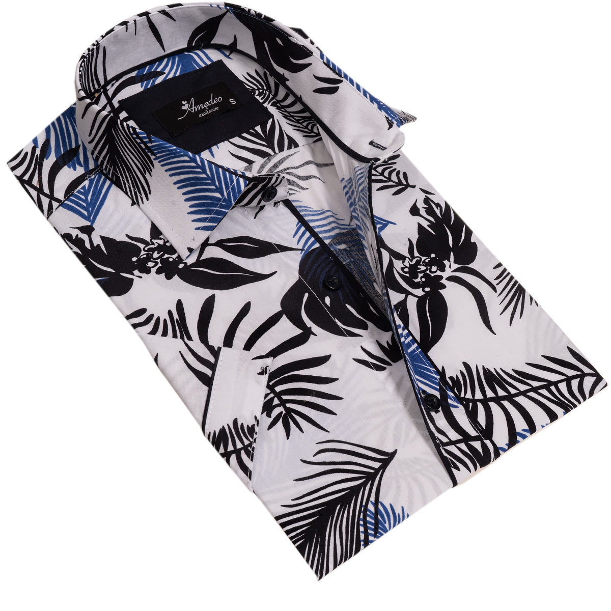 Multicolor Floral Mens Short Sleeve Button up Shirts – Tailored Slim Fit Cotton Dress Shirts