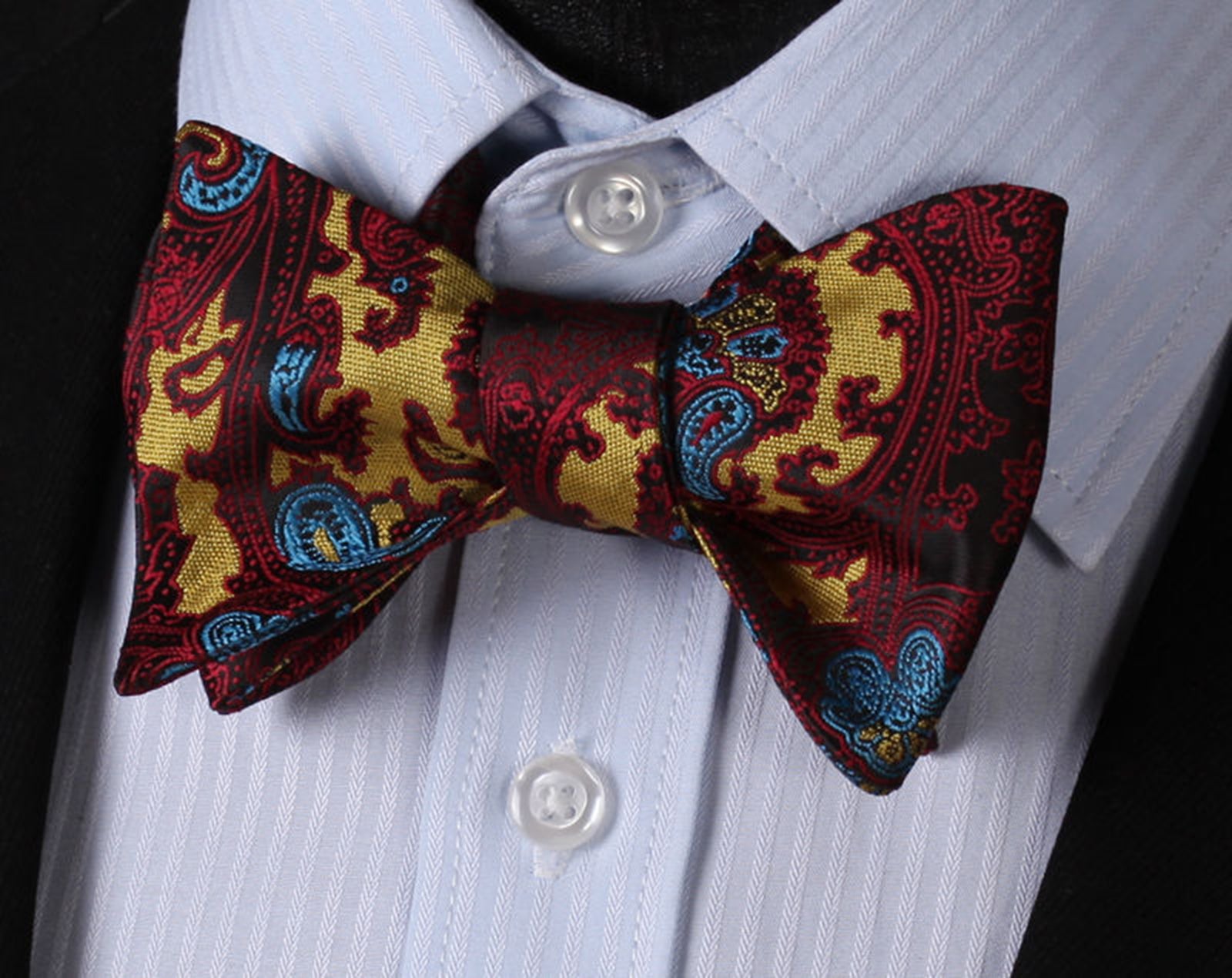 Multicolor Paisley Mens Silk Self tie Bow Tie with Pocket Squares Set