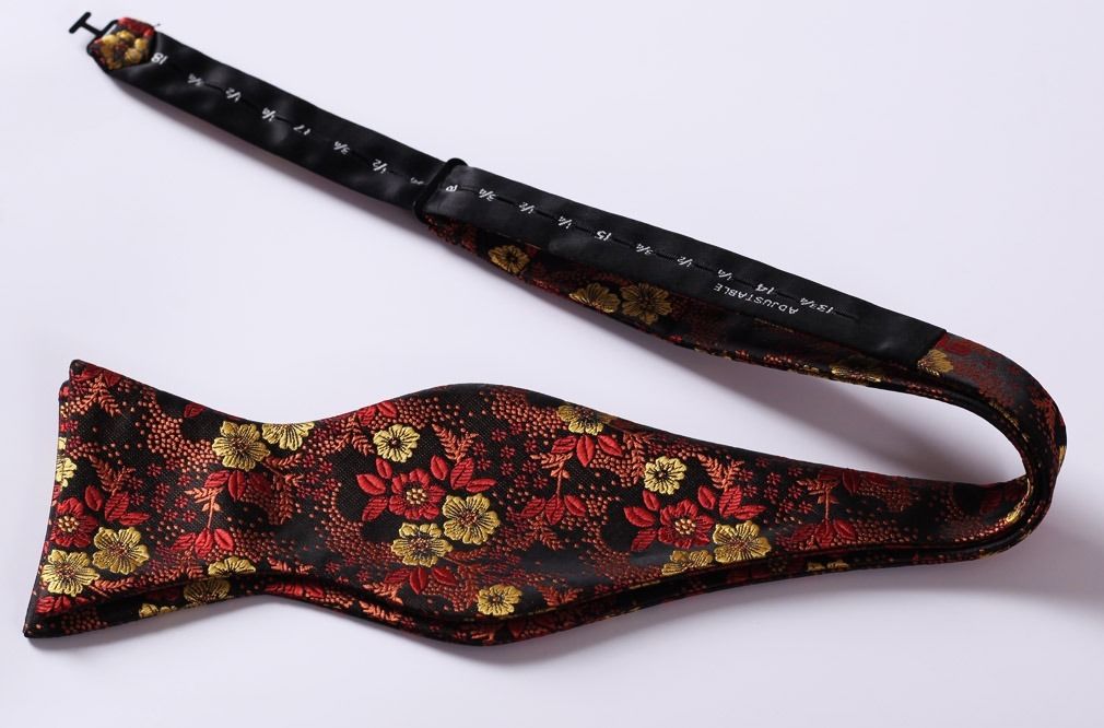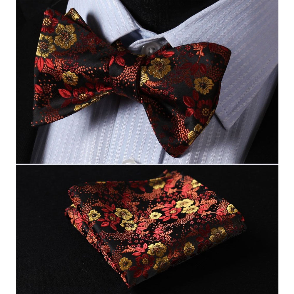 Orange Floral Mens Silk Self tie Bow Tie with Pocket Squares Set