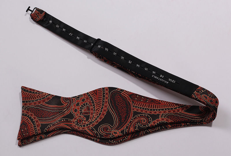 Orange Paisley Mens Silk Self tie Bow Tie with Pocket Squares Set