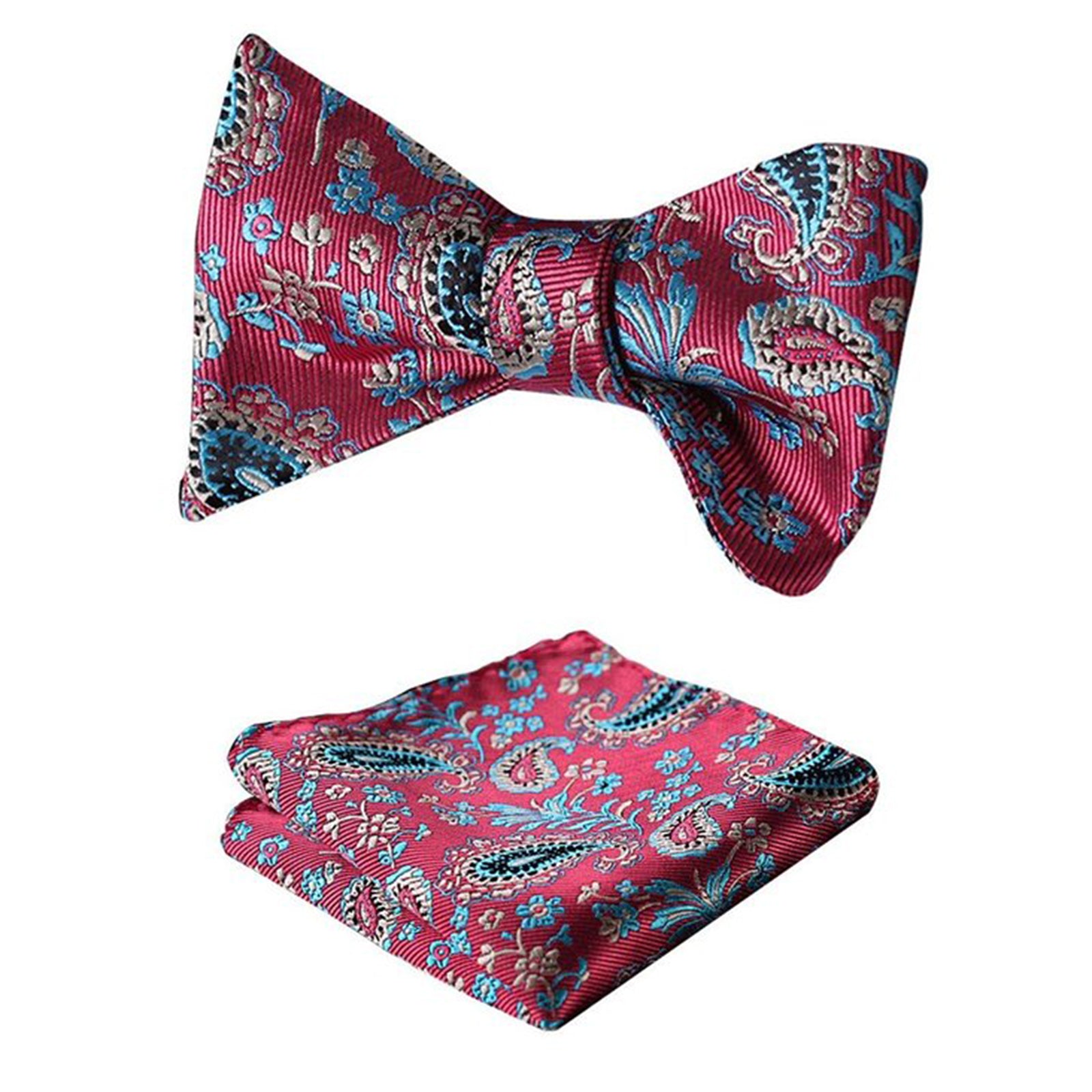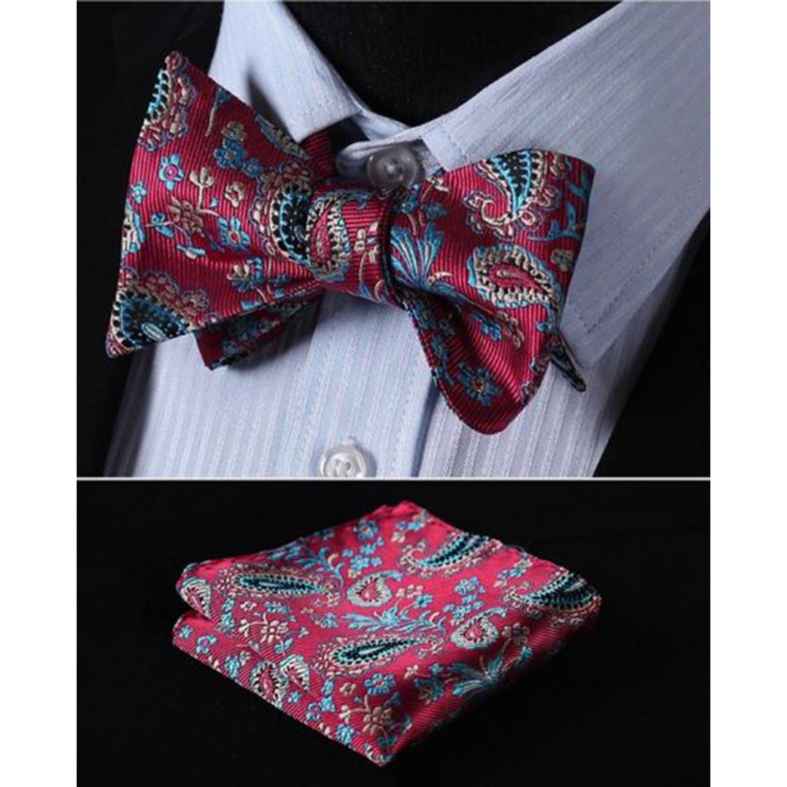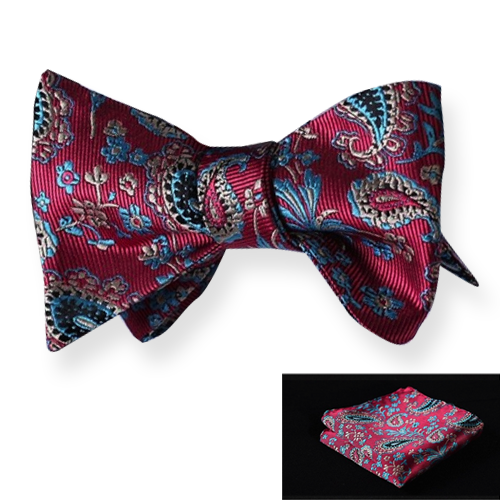 Red Blue Paisley Mens Silk Self tie Bow Tie with Pocket Squares Set