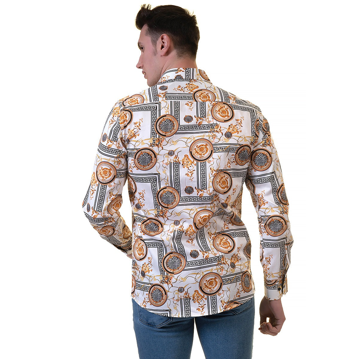 Amedeo Exclusive presents the Slim Fit Designer Dress Shirt which is perfect for formal or casual wear. With this shirt, you get two looks in one!