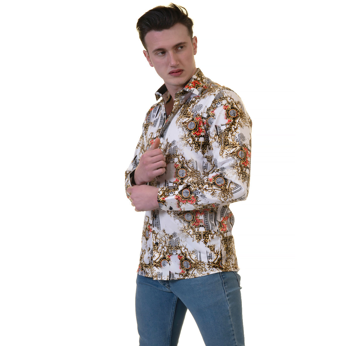 SKU: 6607506243682-white-black-medusa-greek-key-mens-slim-fit-designer-dress-shirt-tailored-cotton-shirts-for-work-and-casual-wear