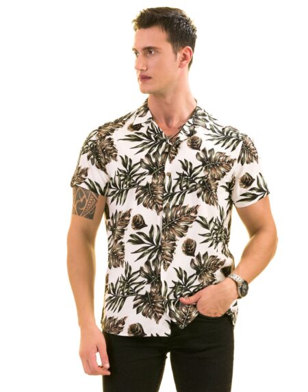 White Printed Tropical Hawaiian Shirt for Men - European Made Summer Wear